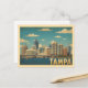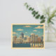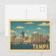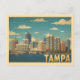 A stunning vintage-style postcard showcasing the modern Tampa skyline rising above the water. The image features the city's downtown buildings and a bridge, all set under a bright blue sky with stylized clouds. The classic, faded colors and retro filter give this image an authentic vintage travel poster feel, evoking the charm of the Sunshine State. This card is perfect for sending a thoughtful message, commemorating a trip to the Florida coast, or framing as a small piece of city art. A great design for anyone who loves Florida, the Gulf Coast, or classic cityscape designs.