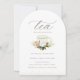Elegant vintage inspired, tea party invitation. Features, delicate art deco border and floral adorned teacup. Elegant soft beige typography design style template with coordinating solid dusty blue color backing.