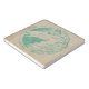 Stone trivet features teal tinted vintage horse cameo illustration on tan background