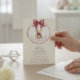 Celebrate the upcoming arrival of your little one with this adorable teddy bear baby shower invitation! Featuring a charming teddy bear graphic, a sweet pink bow, and the heartwarming phrase "We Can Bearly Wait," this design is perfect for a baby boy or baby girl shower. The classic cream background and elegant red bow add a touch of vintage charm, making it a memorable keepsake for your special day. Ensure all your guests receive this lovely invitation to share in your joy and excitement. It's a perfect way to announce your baby shower celebration.