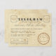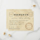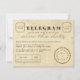 This vintage inspired Telegram Save the Date Card is a fun and unique way to announce your big day! Shown with light brown, dark brown and black inks. The pictured sepia / tea-stained background will be printed on the paper's surface to give the design an aged look. Customize the card by printing your names, wedding date and location on the front, and be sure to include any travel information and wedding website on the back. To adjust the colors, click the orange 'customize it' button, above. Additional font colors will appear on the right.