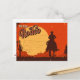 Classic Vintage Texas Rodeo Postcard. Features a Cowboy silhouette in front of a setting sun with a cactus in the background. Stunningly beautiful postcard design.