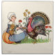 Set of 4 20” x 20” cloth dinner napkins with a vintage image of a hearty turkey and a little Quaker girl sitting on a pumpkin holding a dish of turkey food and yellow flowers. See matching paper cocktail napkin and coasters. See the entire Thanksgiving Napkin collection under the HOME category in the HOLIDAYS section.