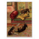 A vintage illustration of three playful and mischievous Dachshund dogs playing in a lady's boudoir. One is pulling on the laces of a discarded corset left on the bed, while the other two are on the floor with a pair of her shoes. They're having lots of fun in the moment, but no doubt they'll be paying the price for it later! This card is blank inside for your own message.