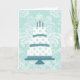 Vintage Three Tiered Birthday Cake in Aqua Card