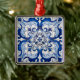 Vintage Azulejo tile floral pattern in blue and white transported to the surface of a Square Christmas Ornament, preserving its history and tradition. Azulejo is a form of Portuguese or Spanish painted, tin-glazed, ceramic tilework. It has become a typical aspect of Portuguese culture. Portugal imported azulejo tiles from Spain, and their use was widespread in religious and private architecture, particularly on facades.