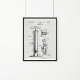 Poster features vintage 1925 Tire Pump patent illustration on added grid line background,