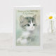A vintage greeting card image features an illustration of a gray and white kitten against a similar background in soft shades of gray, blue-gray and white. The front of the card says "Thinking of You, Sister, on Your Birthday." The message inside the card is "Hope your special day is bright and beautiful just like you!"