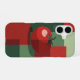 Stylized tomato on geometric blocks in a muted red-green palette.