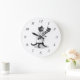 A wall clock with a vintage black and white drawing of a cat wearing glasses and a coat, tipping his top hat, with vintage black numbers Click Customize It to add your name or message.