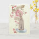 This is a traditional Catholic First Holy Communion Invitation with an image of Our Lady of Fatima and pink roses. All text and fonts inside can be modified.