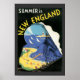 Vintage advertisement encouraging people to "summer in New England" with the shape of a train in the center