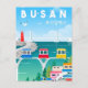 vintage, retro, travel, modern, watercolor, classic, Busan, South Korea, Vacation, asia,