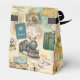 This favor box features a vintage style collage of travel elements. This favor box is perfect for party favors for a bon voyage/farewell party. The text on the favor box is customizable and perfect to personalize it for your party.
