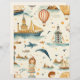 This Vintage Travel Destination Beach Sea Paper, available online, perfectly captures the timeless allure of seaside travel. The design features an array of classic motifs including sailboats gently bobbing on the waves, hot air balloons drifting serenely in the sky, playful dolphins leaping from the sea, and birds soaring overhead. Each element is rendered with a vintage aesthetic, using muted colors and distressed textures to evoke the feeling of an old-fashioned postcard or a cherished memory.