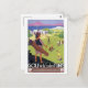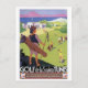 From a classic travel poster, advertising playing golf in Tunisia. Early art deco style in pastel colors.