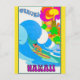 Anyone would love to receive this vintage tropical Hawaiian travel postcard featuring a retro colorful illustration of a surfer surfing on the ocean in Hawaii!
