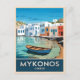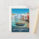 Discover the timeless allure of Mykonos, Greece, with this retro travel-inspired design. Infused with nostalgic vibes and vintage charm, this piece captures the laid-back yet vibrant spirit of this Mediterranean paradise in a retro minimalist style that combines mid-century aesthetics with a modern twist.