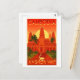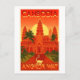 This postcard features a reproduction of a vintage travel poster advertising Angkor Wat in Cambodia.