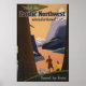 Visit the Pacific northwest wonderland... Travel by train. Vintage travel poster showing a man and woman looking out over mountains and a city by the water, from among redwood trees, circa 1925.