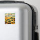 vintage travel poster of the countryside in Tuscany Italy with cypress trees, rolling golden hills and remote houses