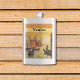 Vintage travel poster of Venice, Italy. Boatmen in the canals of Venice during sunset