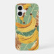 Retro pattern featuring stylized bananas and large tropical leaves in a soft, washed-out, and nostalgic palette.
