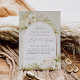 Tropical chic bat mitzvah invitations in an alluring neutral color palette feature a rose gold foil arch bearing your ceremony and celebration or party details, accented with pale green watercolor palm fronds, beachy island foliage, white orchids, boho dried botanicals and pampas grass.