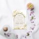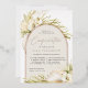 Tropical chic confirmation invitations in an alluring neutral color palette feature a rose gold foil arch bearing your church ceremony and celebration or party details, accented with pale green watercolor palm fronds, beachy island foliage, white orchids, boho dried botanicals and pampas grass.