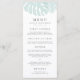 Our island chic wedding menu features your starter courses, entrees and desserts in elegant gray lettering, accented with two sheer seafoam green tropical monstera leaves in a vintage illustration style. Coordinates with our Vintage Tropics wedding invitation collection, perfect for beachside affairs or destination weddings.