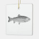 This ornament includes a vintage style rainbow trout illustration. This native trout is one of North America's top sport fish. Native to cool mountain streams of the Rocky Mountains, rainbow trout are favored by fly fishermen and other anglers. During the breeding season, male trout display prominent black spots over a rainbow pattern of blue, green, pink, silver, white, and other colors. Visit our store (https://www.zazzle.com/fish_fishing_seafood) to see our full selection of rainbow trout and other fish logos.