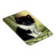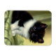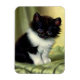Magnet featuring a darling tuxedo kitten! This black and white kitten cutely poses on green and red blankets. A wonderful gift for cat lovers and Victorian art enthusiasts!