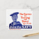 Vintage U.S. Navy recruiting poster showing a smiling sailor. The service for training and travel, Ages 17 to 35 - Join the Navy - Apply Navy recruiting station