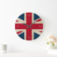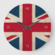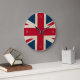 Custom British wall clock featuring a vintage style clock face with Roman numerals and grunge Union Jack UK flag. Hour markings can be customized.