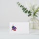 A business card template with a vintage etching of a US flag in retro red, white and blue, flying proudly on a flagpole topped with an American eagle and a rope with a tassel. Click Customize It to add your name or message.