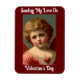 Beautiful, vintage picture of an angel dressed in red with a red heart, is featured on this flexible photo magnet for Valentine's Day. With message, " Sending My Love On Valentine's Day", makes this a lovely decoration or gift to give your special Valentine!
