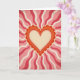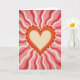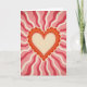 This design shows a large layered heart in the center, with a scalloped outer edge in deep orange and lighter orange and cream layers inside. Behind it, wavy rays spread out across the whole background, switching between dark red, soft pink, and cream. The heart feels warm and steady, and the rays add a lively sense of movement without looking busy. Everything has a slightly worn, grainy look, like an older printed poster on textured paper. There isn’t any text on the card, so the heart and the rays do all the talking. The simple shapes and warm colors make it feel romantic and comforting, like a classic Valentine that still feels current 💘❤️. Share it as a sweet way to send a little love on Valentine’s Day.
