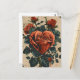 This vintage Valentine's Day postcard features intricately illustrated red roses and delicate hearts, creating a timeless romantic ambiance. A faded, sepia-toned background enhances its antique charm. In one corner, an old-fashioned love letter with elegant script adds a touch of nostalgia, capturing the essence of enduring love through the artistry of a bygone era.