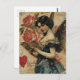 In this enchanting vintage Valentine's Day postcard, a winged woman with an ethereal aura is captured in a moment of serene charm. Poised with grace, she delicately flips through the pages of a book, surrounded by an atmosphere that exudes timeless romance. The soft hues and intricate detailing evoke a sense of nostalgia, making it a perfect token for celebrating love and intellectual connection.