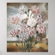 Vintage Variegated Carnation Flowers with Grey Sky Poster
