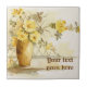 Vintage vase with yellow roses watercolor fine art tile, featuring a beautiful beige and brown vase with yellow roses watercolor painting. One rose branch extends outward. This floral design is a customizable template and you can change text or delete it if desired.