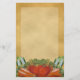 Lined stationery with vintage art of heirloom vegetables with tomatoes, carrots and corn on a faux parchment background. Click Customize It to add your name or message