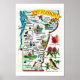 A vintage, illustrated postcard map of the state of Vermont.