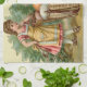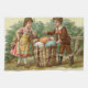 Vintage Victorian Easter kitchen towel featuring a boy offering a basket full of Easter eggs to his lassie!