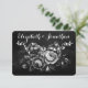 Beautiful and fancy wedding accommodations card featuring pretty vintage Victorian era roses and ribbons on a whimsical chalkboard background. Customize it with your own text.