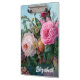 Vintage Victorian Roses Custom Clipboard beautiful roses all shades of pink, orange and red on blue background with green leaves with antique look You can personalize it or delete text