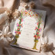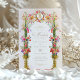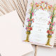 This stunning wedding save-the-date card features a luxurious blend of colors and intricate floral details inspired by Art Nouveau style. The front showcases a lush floral arrangement of pink, red, and lavender blooms in elegant golden vases, accentuated by vibrant green stems. At the top, delicate golden filigree, adorned with botanical motifs and touches of blue, pink, and gold, surrounds the couple's initials. The soft pastel background enhances the rich details of the florals and gives a refined and sophisticated feel. The reverse side features an intricate gold geometric pattern, adding a timeless and elegant touch to the card’s design. Perfect for couples looking to announce their wedding date with a touch of classic charm, blending modern elegance with the beauty of nature.