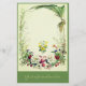 Delicate, vintage tropical flora print on a cream background framed in green. Features palm leaves, flowers and bamboo. Ready for you to personalize.