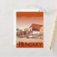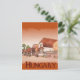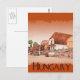 Quaint scene of old Hungarian homes,watercolor painting on paprika background.Customizable "Hungary" text.
