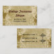 Vintage Old Style Business Cards. Professional business cards with a distressed old time retro vintage antique fabric look and a border of floral leaves and vines of either side on both on the front and on the back of the card. Light brown faded sepia and beige tones ready for you to add your custom information on both front and back of this unique, old fashioned looking card. Added to the back of the card is a unique, decorative, artistic scroll graphic flourish that enhances and gives an added flair to the design.